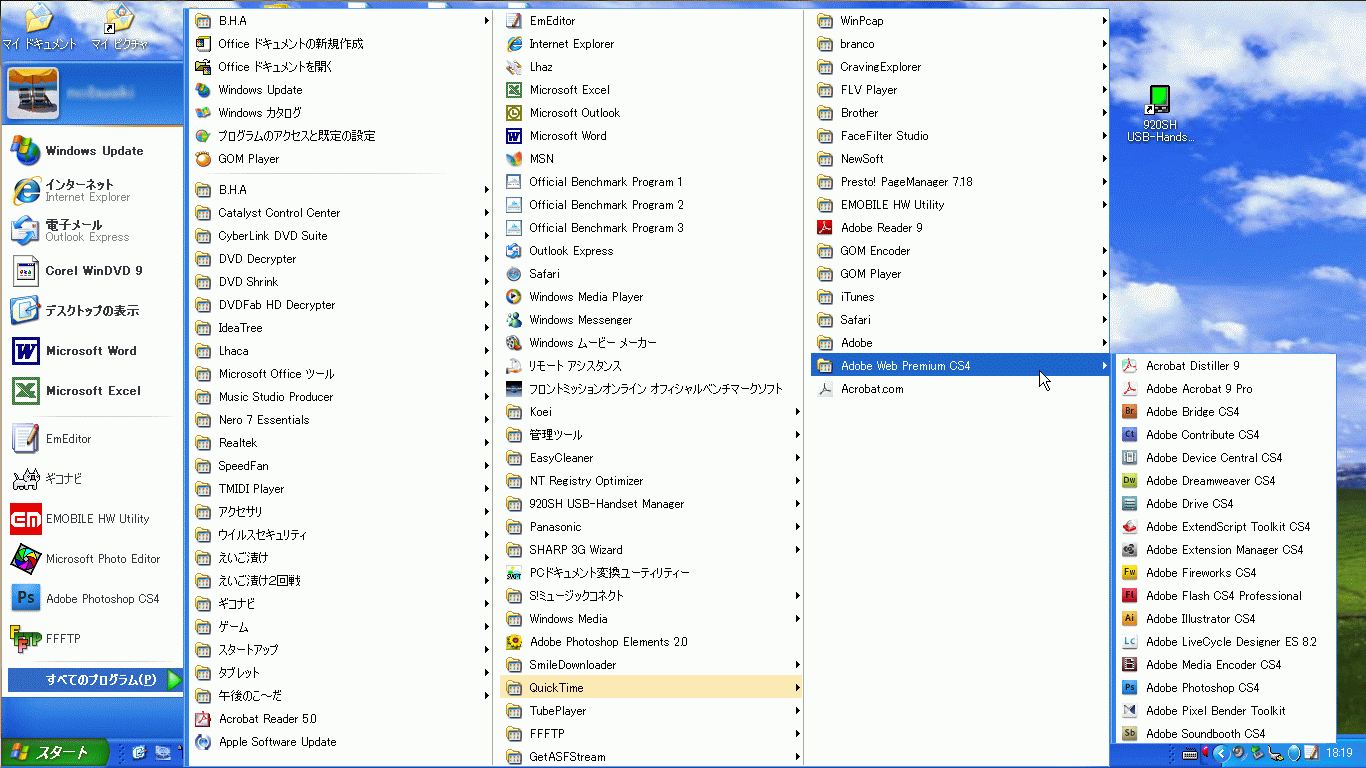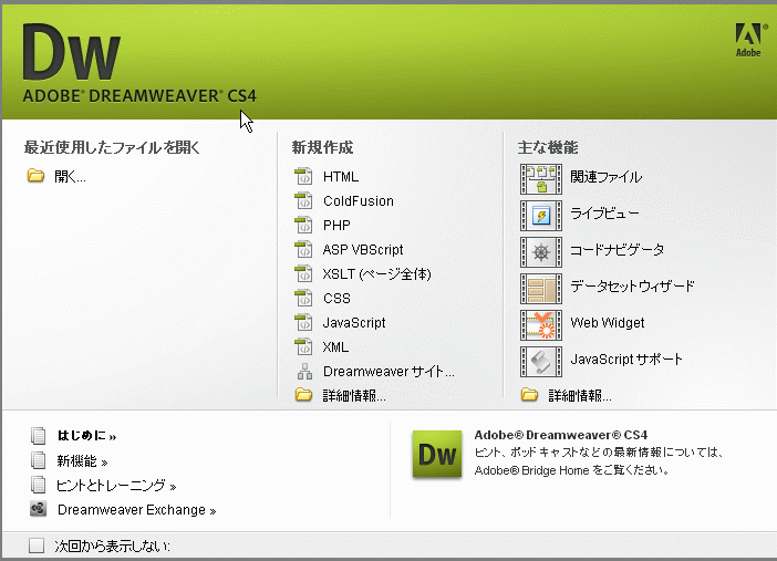 インストールに苦労した。DVD2枚のインストールディスクだが、1枚目の途中で進まなくなった。市販のソフトでインストールに失敗したのは初めてだ。必要構成を見直してみると、敷居は高い。次の日、QuickTimeをインストールした後、CS4のインストールは止まることはなかった。2枚目のディスクでアクセス音がカシャカシャとうるさかったが、インストールは成功した。