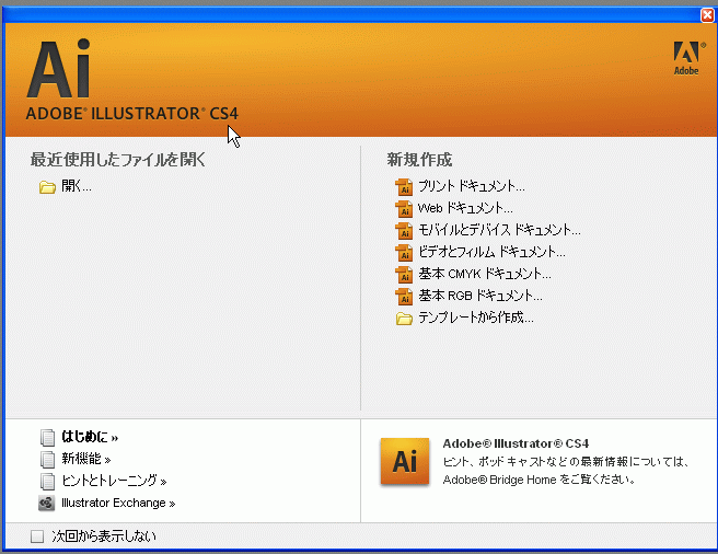インストールに苦労した。DVD2枚のインストールディスクだが、1枚目の途中で進まなくなった。市販のソフトでインストールに失敗したのは初めてだ。必要構成を見直してみると、敷居は高い。次の日、QuickTimeをインストールした後、CS4のインストールは止まることはなかった。2枚目のディスクでアクセス音がカシャカシャとうるさかったが、インストールは成功した。