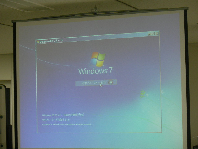 それでは、昨日のPC組立の続きの話を。電源を入れ、昨日組立てたPCに異常がないか確認する。CPUの温度が高いと、BIOSの画面に出る。CPUファンが回っていないらしい。先生があっという間に直す。続いてまっさらのハードディスク(500GB)にOSをインストールしていく。しかも、WindowsとUbuntu(ウブントゥー)のデュアルブートだ。まずはWindows7RC。途中でハードディスクを分割しながらインストール。ここではプロダクトキーがわからないというハプニングが発生。プロダクトキーは、OSのインストーラのダウンロードの際、表示された、とのこと。このハプニングも、数分で解消。